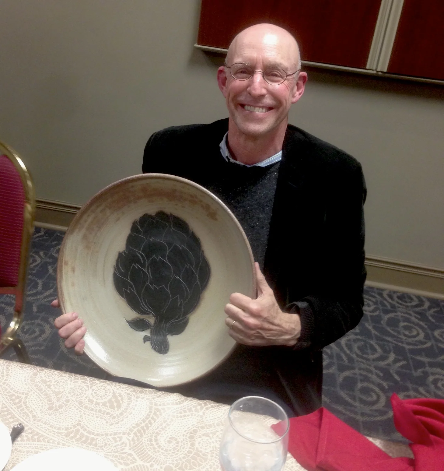 We're extremely pleased to see Michael Pollan so happy receiving his Artichoke Platter... a gift from the University of Dayton.